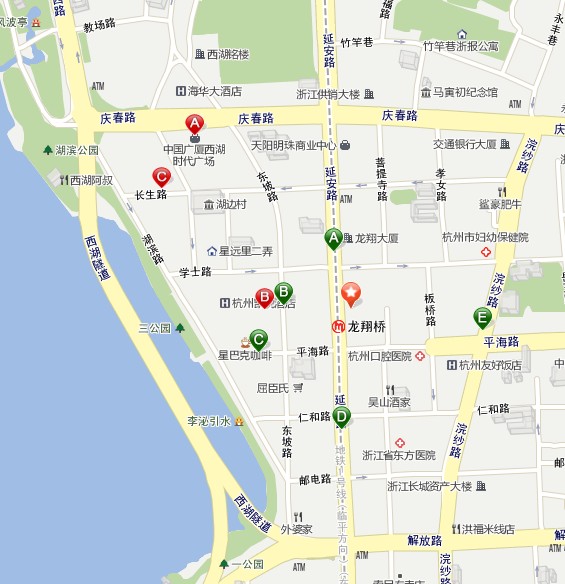 公交站点: 胜利剧院(龙翔桥)/东坡路平海路口/平海路(近岳王路)/湖滨(湖滨路)/市一医院(省妇保)